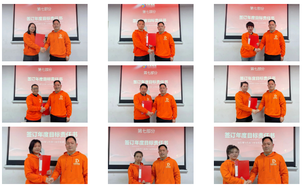 會上,總經(jīng)理與各部門負(fù)責(zé)人簽署了2025年度目標(biāo)責(zé)任書,各部門主管目光如炬,手中的筆仿若承載著團(tuán)隊的夢想與未來,每一筆落下,都似在奏響奮進(jìn)的戰(zhàn)鼓;隨后全體員工以篤行無畏的氣勢簽下2025年軍令狀,軍令狀的簽署,不僅是對完成各項目標(biāo)的堅定承諾,也是自我激勵、追求卓越的“奮進(jìn)宣言”,象征著一份責(zé)任、一種擔(dān)當(dāng)、一次集結(jié)。